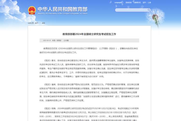 考研時(shí)間定了|教育部部署2024年全國(guó)碩士研究生考試招生工作