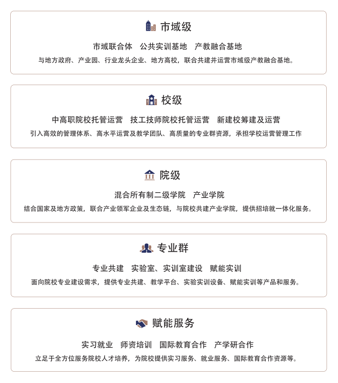 民晟數(shù)智以教育部、工業(yè)和信息化部發(fā)布的《現(xiàn)代產(chǎn)業(yè)學(xué)院建設(shè)指南(試行)》相關(guān)要求為標(biāo)準(zhǔn),結(jié)合各區(qū)域的政策及院校特色,為合作院校提供相關(guān)產(chǎn)品和服務(wù)。