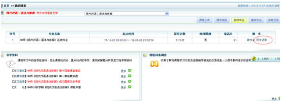 | 第七步: ? ? ? ? 點擊“歷史記錄“如圖13-7所示,可看到歷次作業(yè)得分情況。 |