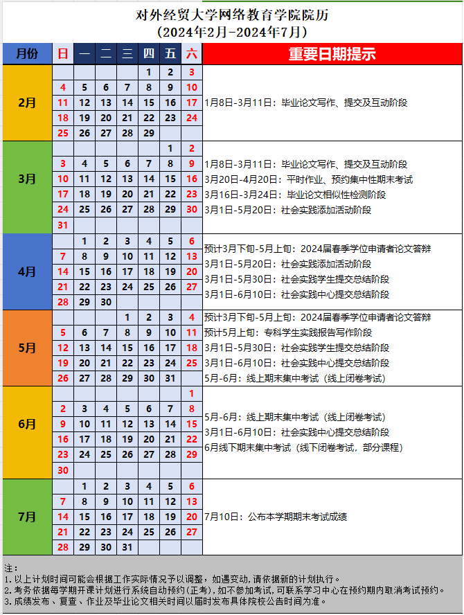 12.24春學(xué)期對(duì)外經(jīng)貿(mào)大學(xué)網(wǎng)絡(luò)教育學(xué)院學(xué)期院歷(2024年2月-2024年7月).xlsx