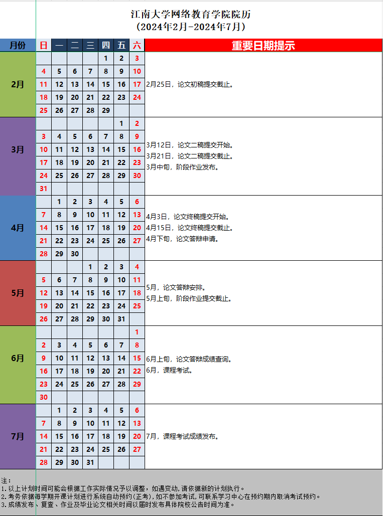 2.24春學(xué)期江南大學(xué)網(wǎng)絡(luò)教育學(xué)院院歷(2024年2月-2024年7月).xls