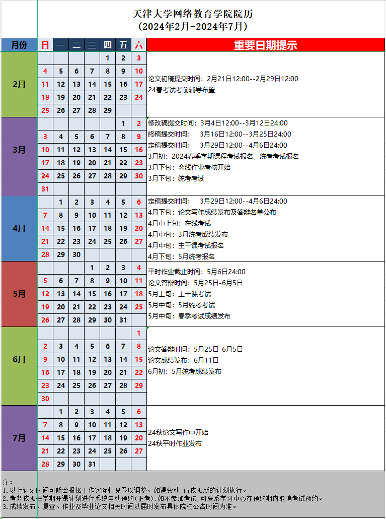 14.24春學(xué)期天津大學(xué)網(wǎng)絡(luò)教育學(xué)院院歷(2024年2月-2024年7月).xls