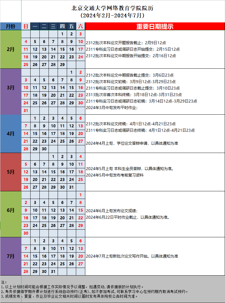 18.24春學期北京交通大學網絡教育學院院歷(2024年2月-2024年7月).xls