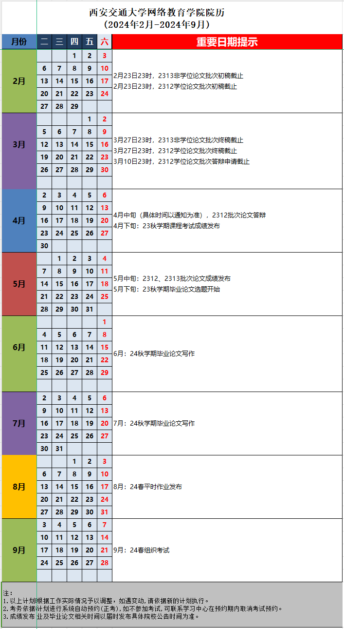 34.24春學期西安交通大學網(wǎng)絡教育學院院歷(2024年2月-2024年9月).xlsx