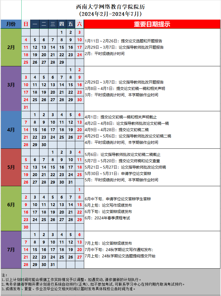 8.24春學期西南大學網(wǎng)絡(luò)教育學院院歷(2024年2月-2024年7月).xlsx
