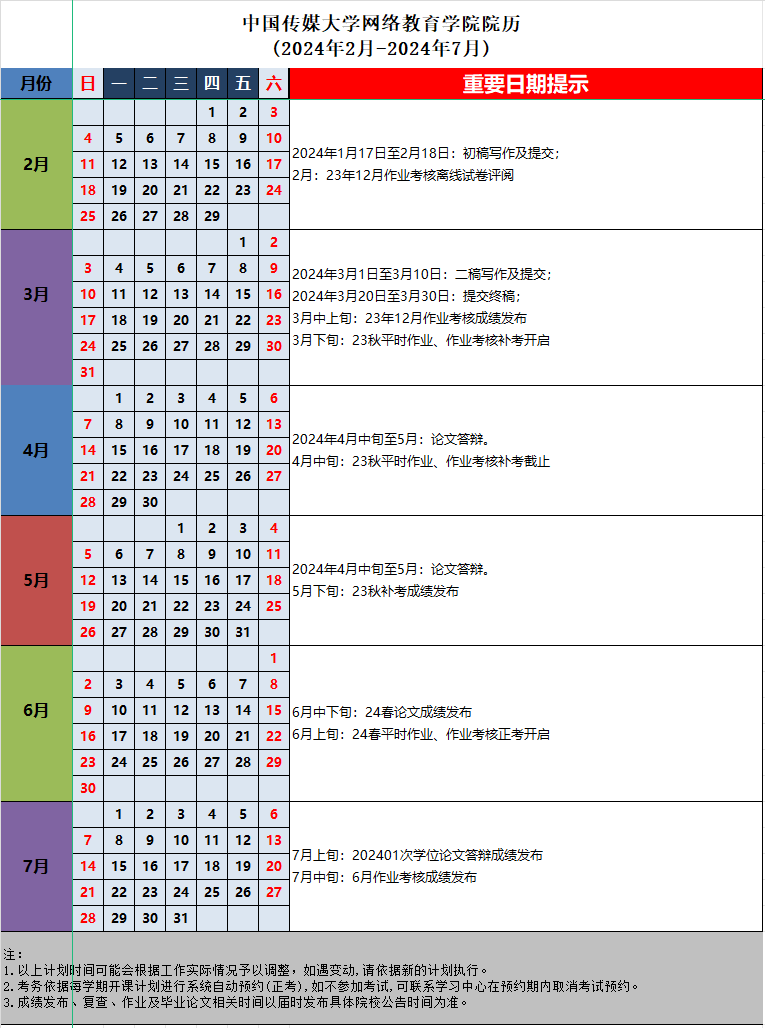 7.24春學(xué)期中國傳媒大學(xué)網(wǎng)絡(luò)教育學(xué)院院歷(2024年2月-2024年7月).xlsx