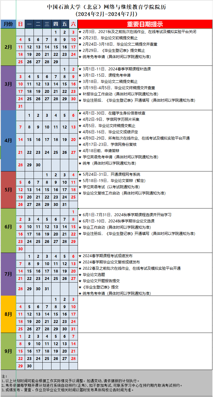 31.24春學(xué)期中國石油大學(xué)(北京)網(wǎng)絡(luò)與繼續(xù)教育學(xué)院院歷(2024年2月-2024年7月).xlsx